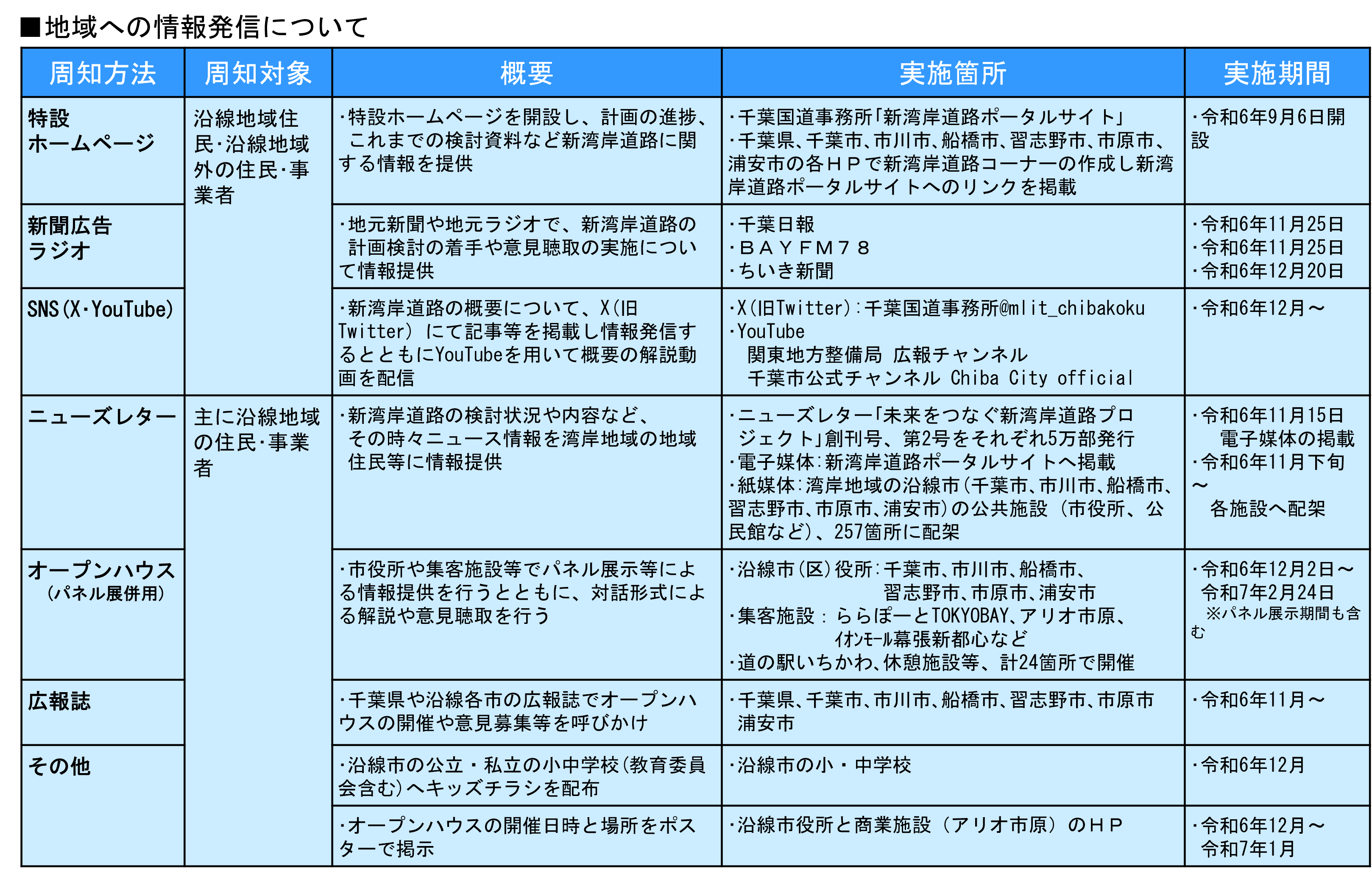 第1回コミュニケーション活動の内容(新湾岸道路 第2回 有識者委員会資料(令和7年5月28日)より引用)