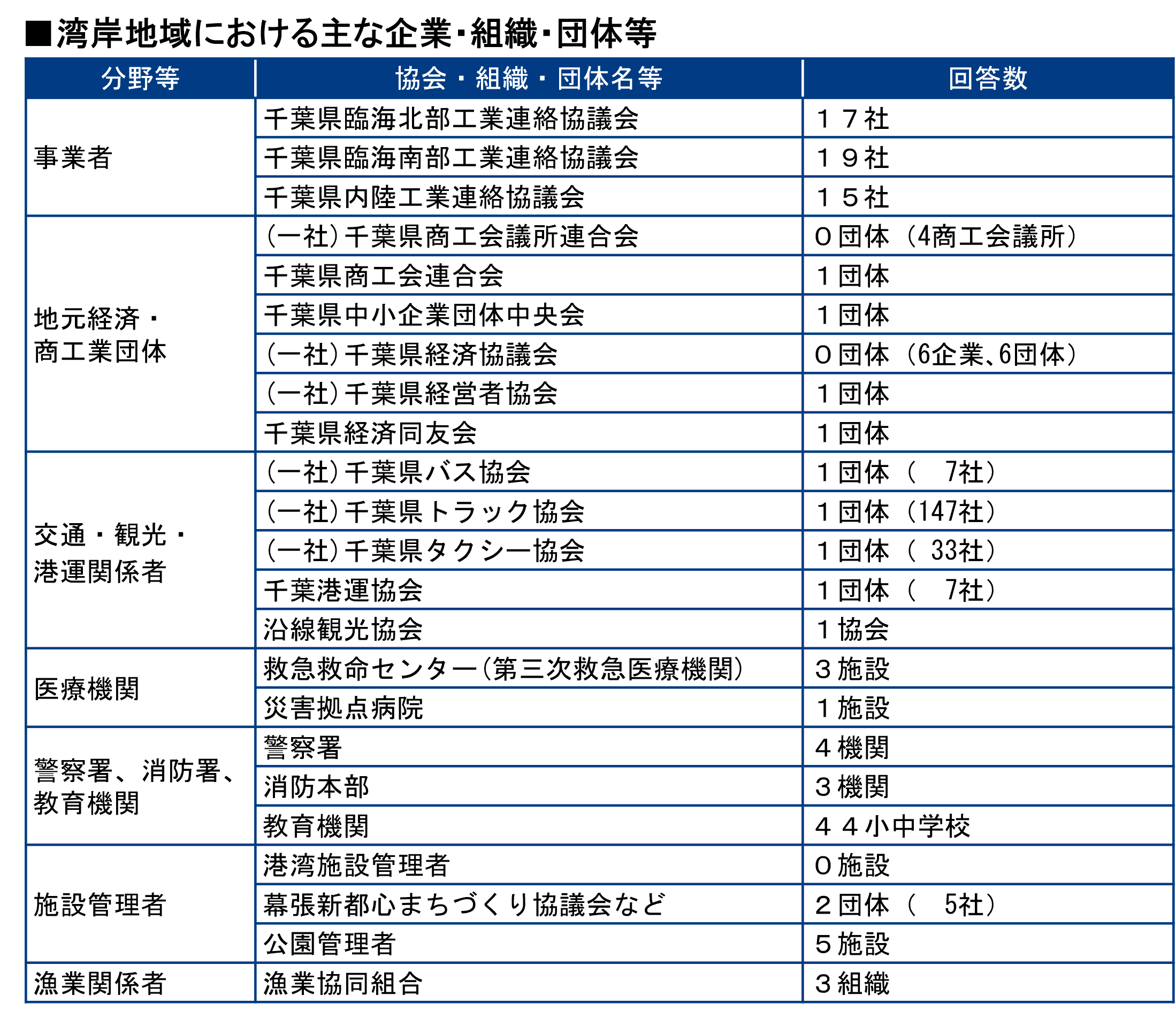 経済産業、運輸物流、医療、教育等の企業・組織・団体等はアンケートで意見を聴取