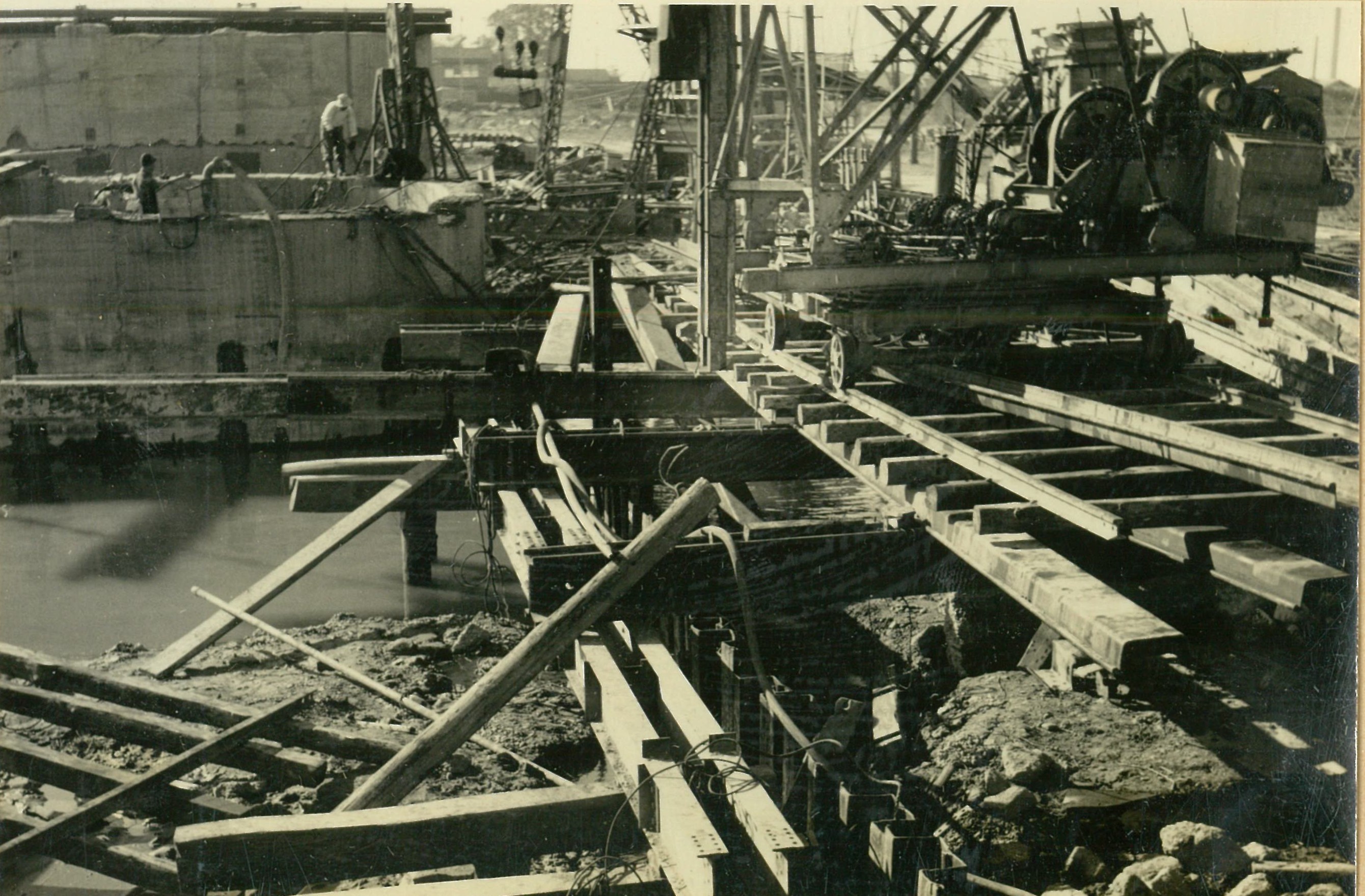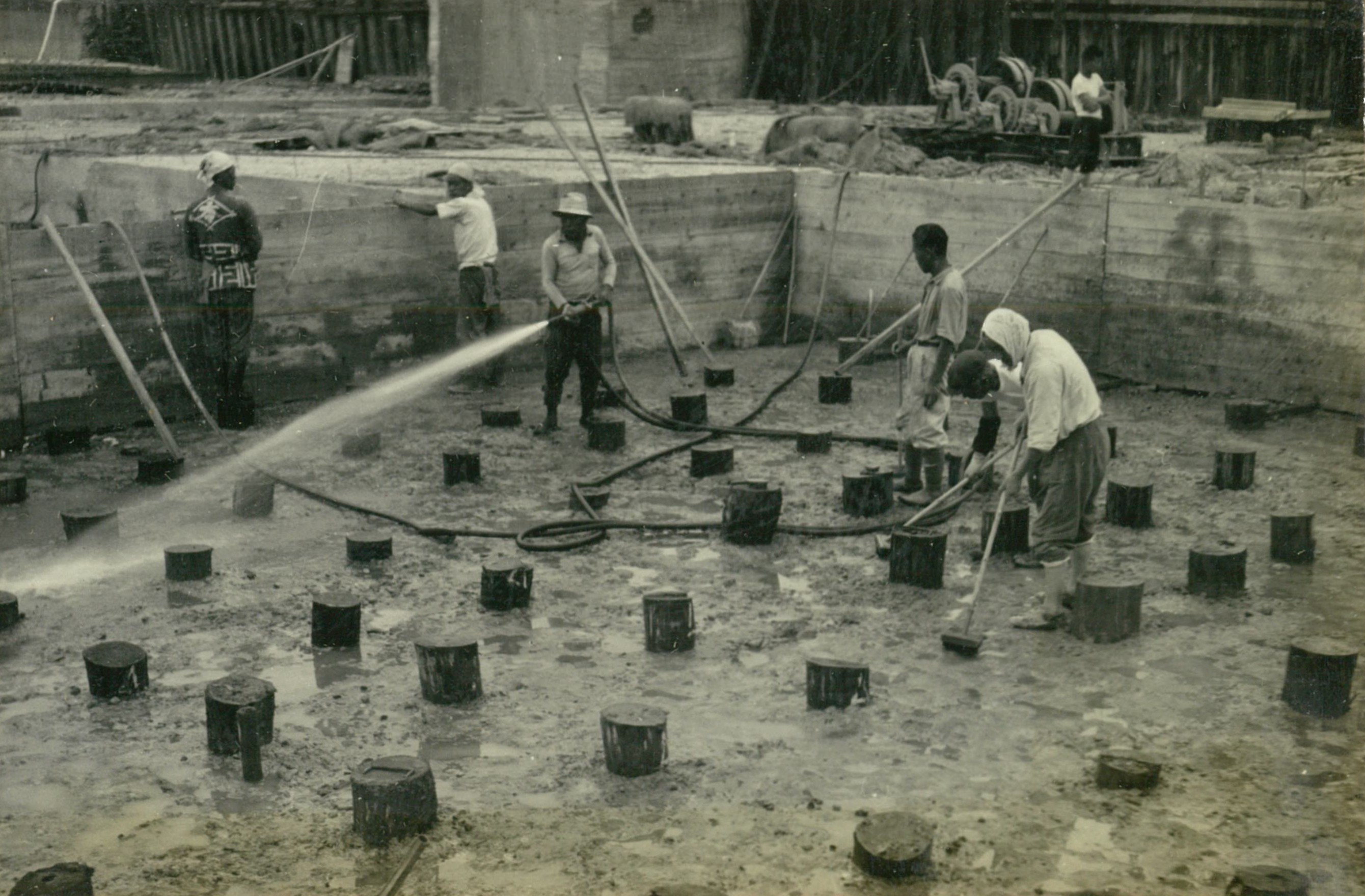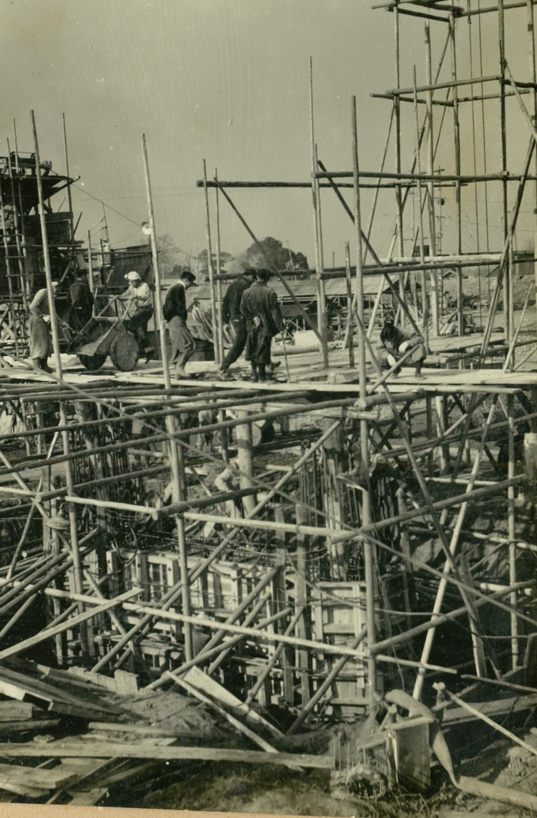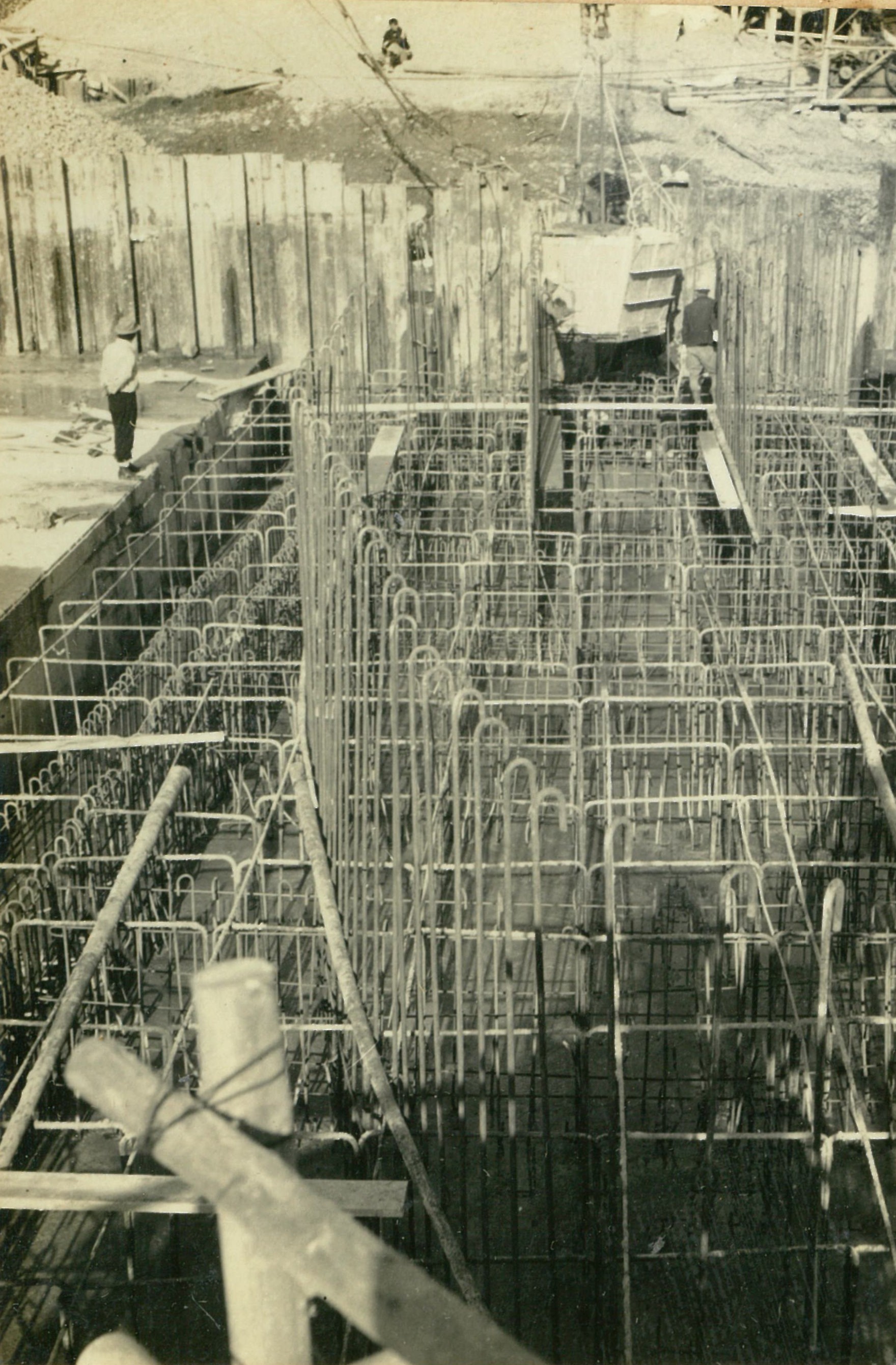 説明仮井筒徹却と併行し、コンクリートが着々と打設されて行く。