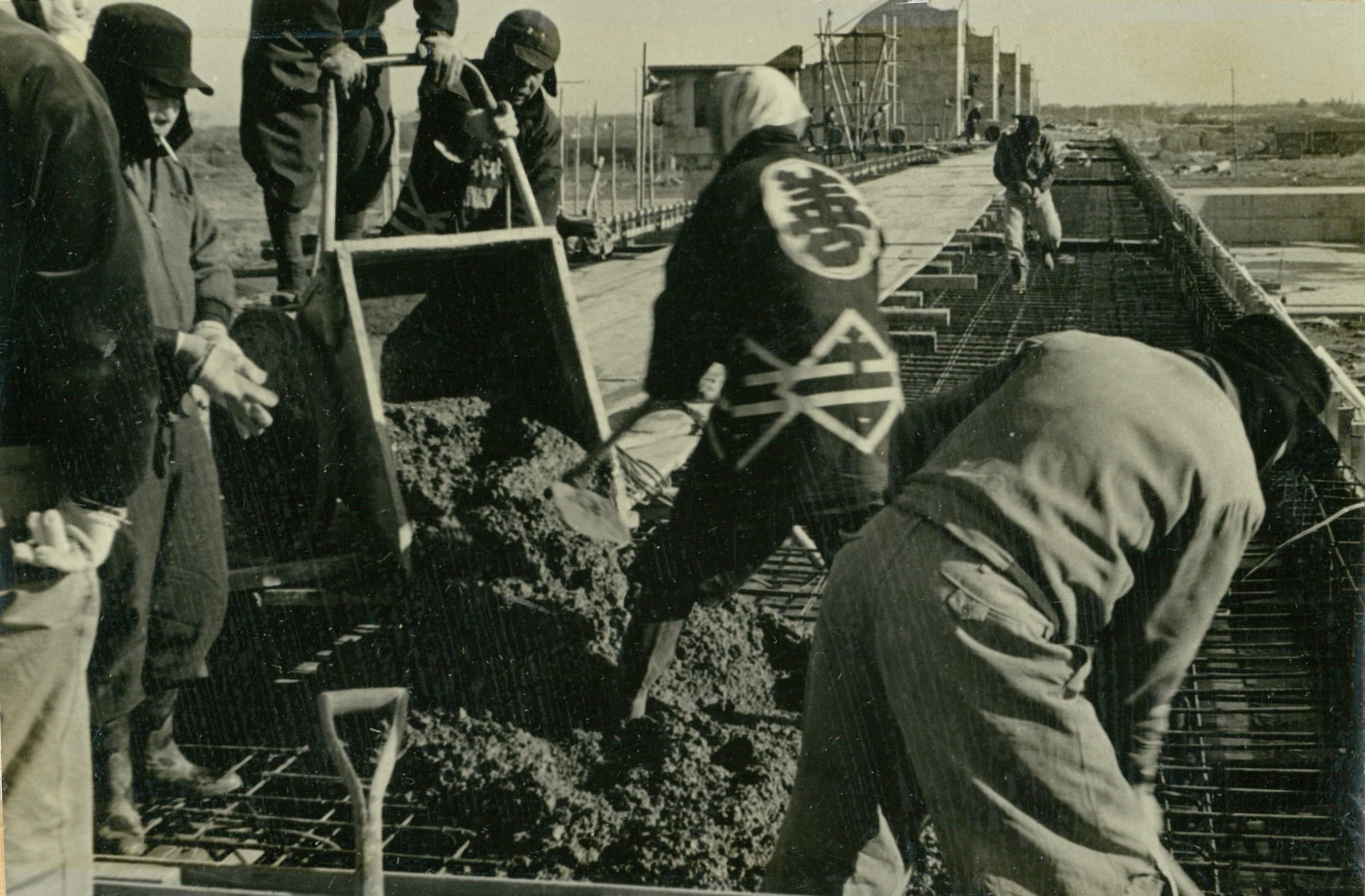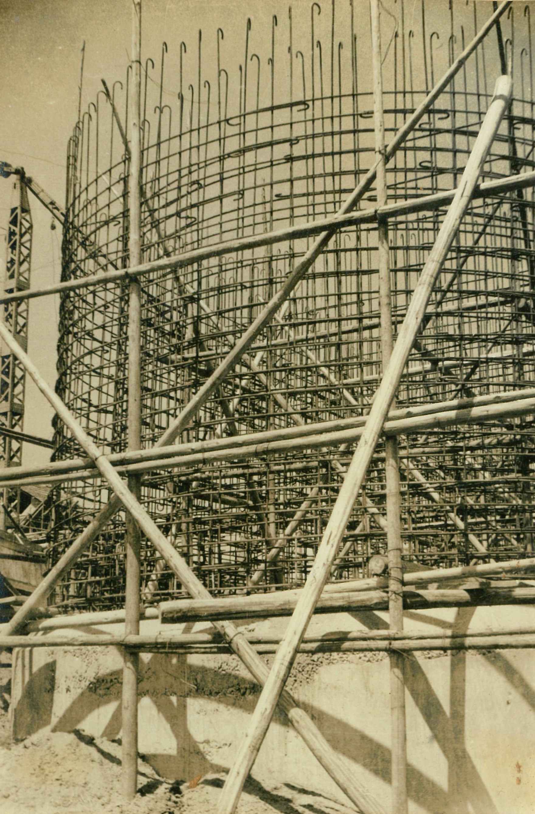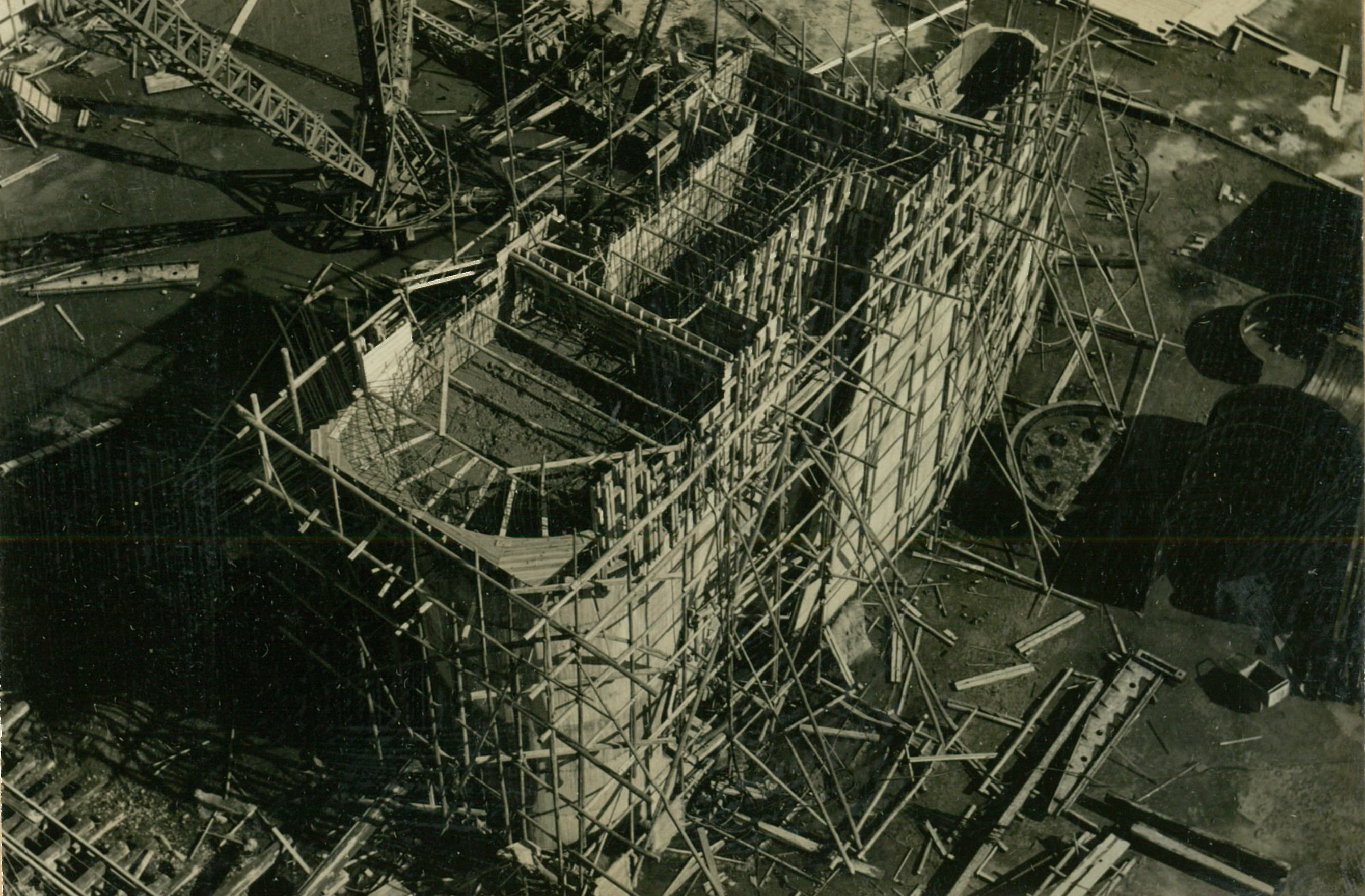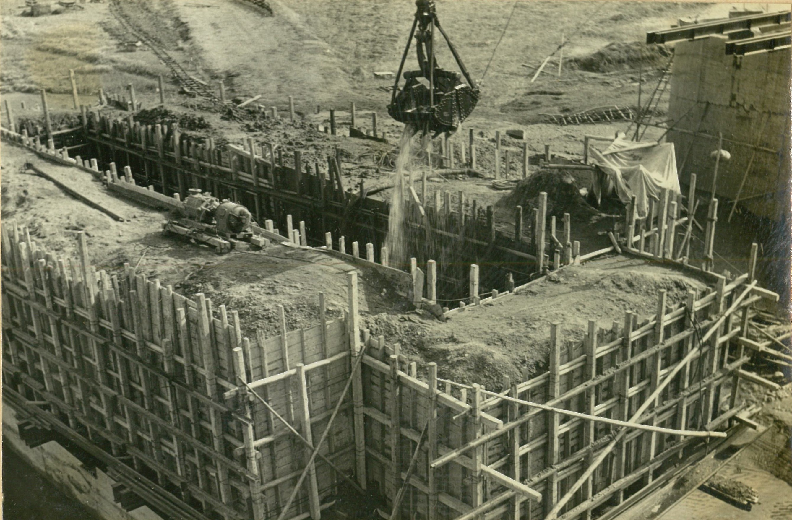 説明仮井筒徹却と併行し、コンクリートが着々と打設されて行く。