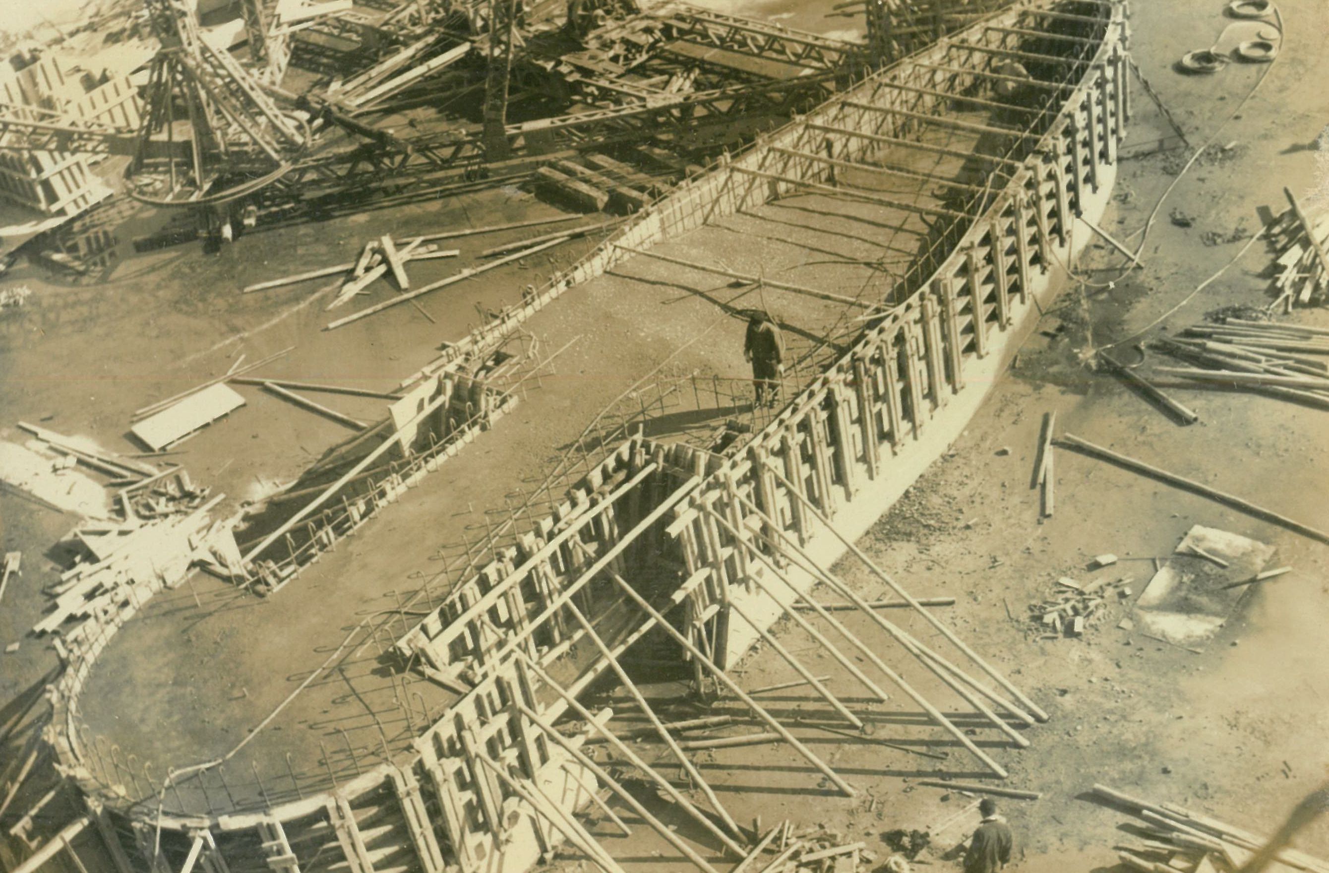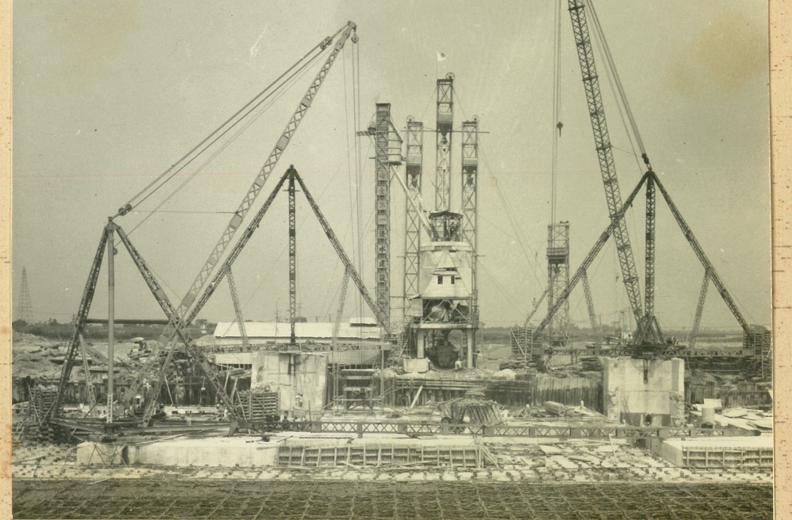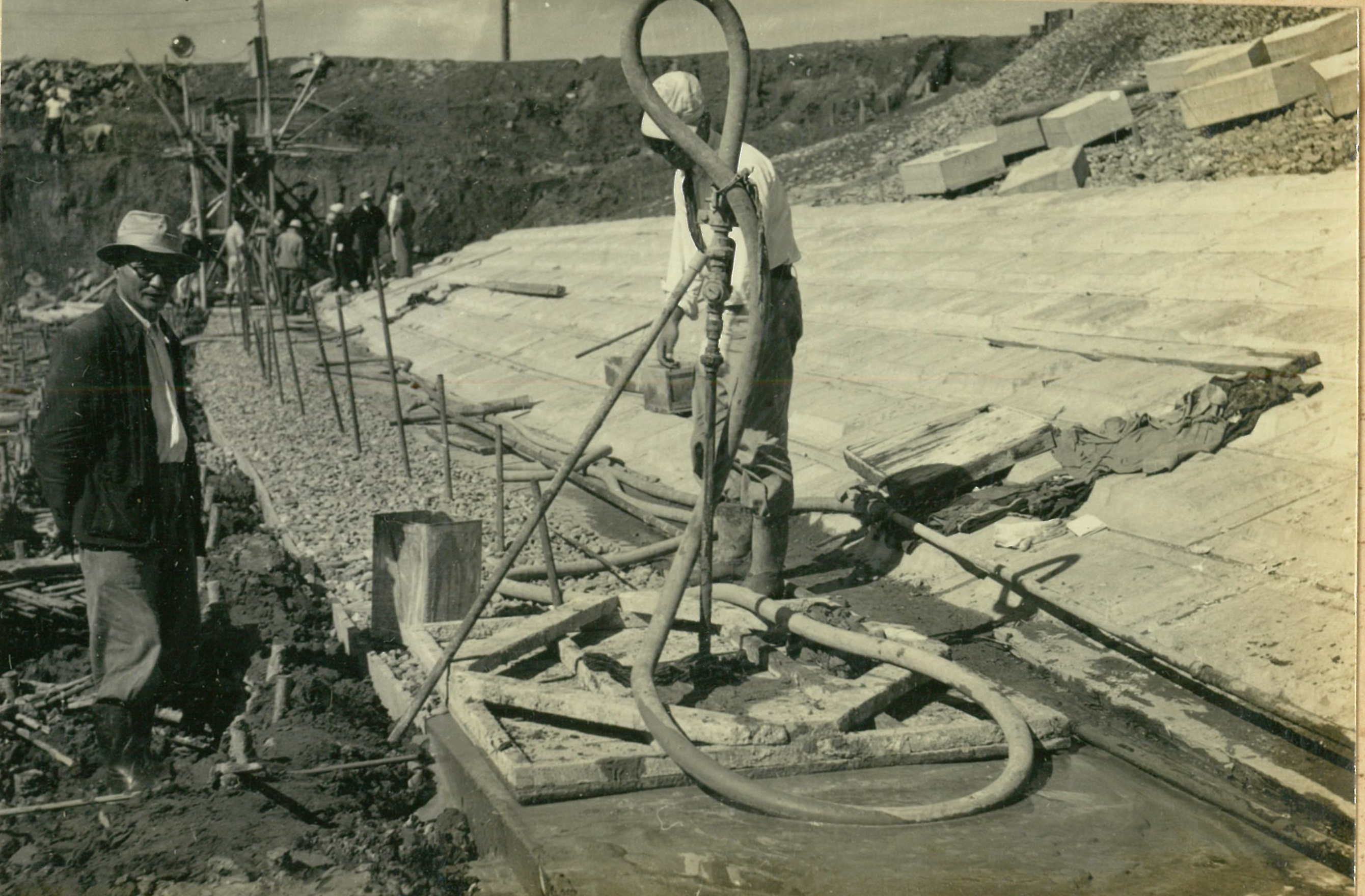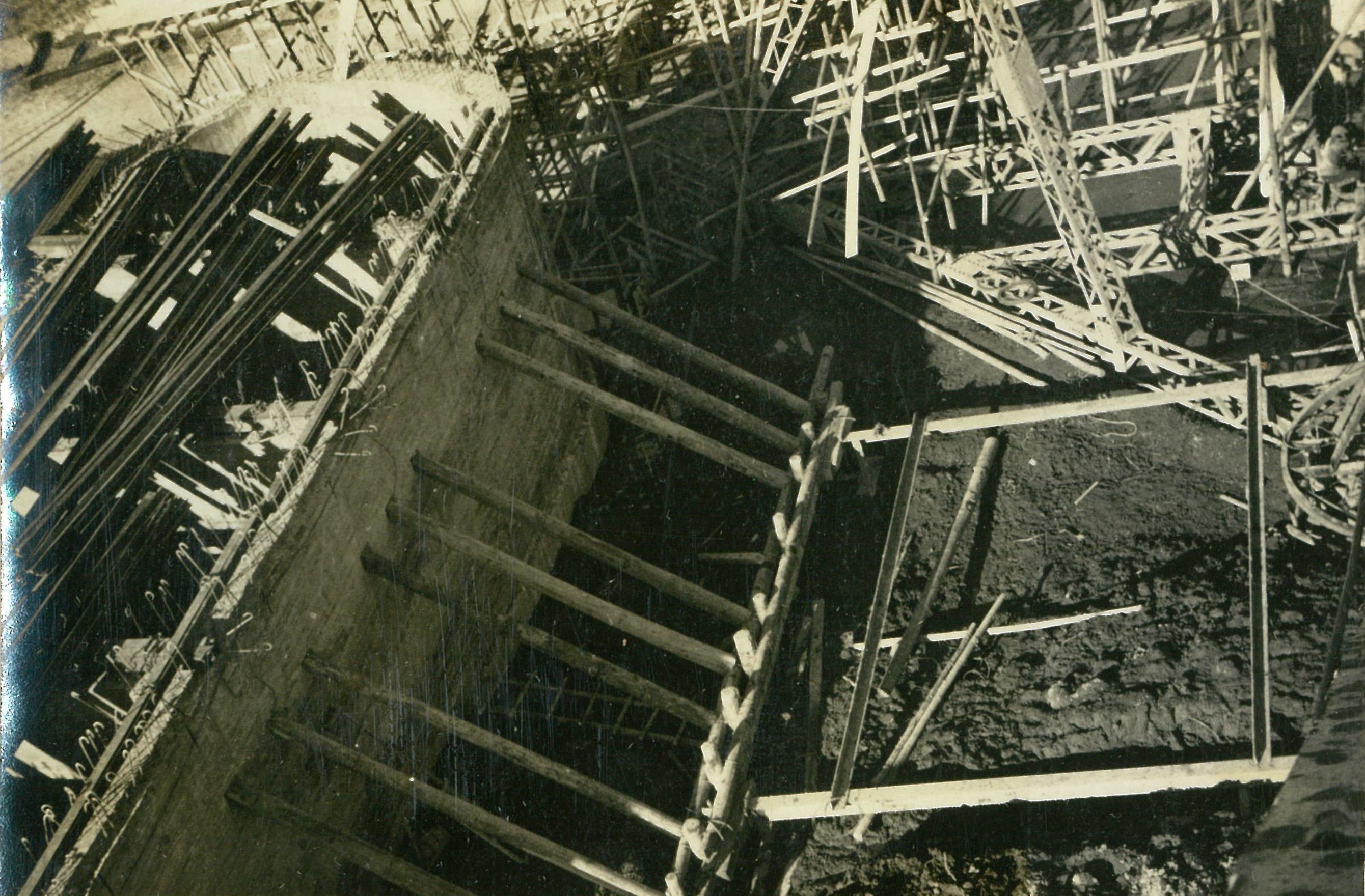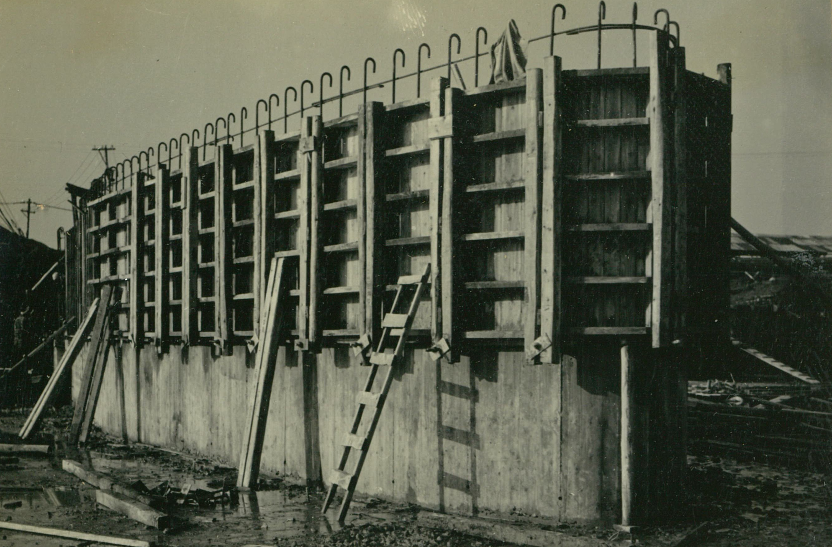説明仮井筒徹却と併行し、コンクリートが着々と打設されて行く。