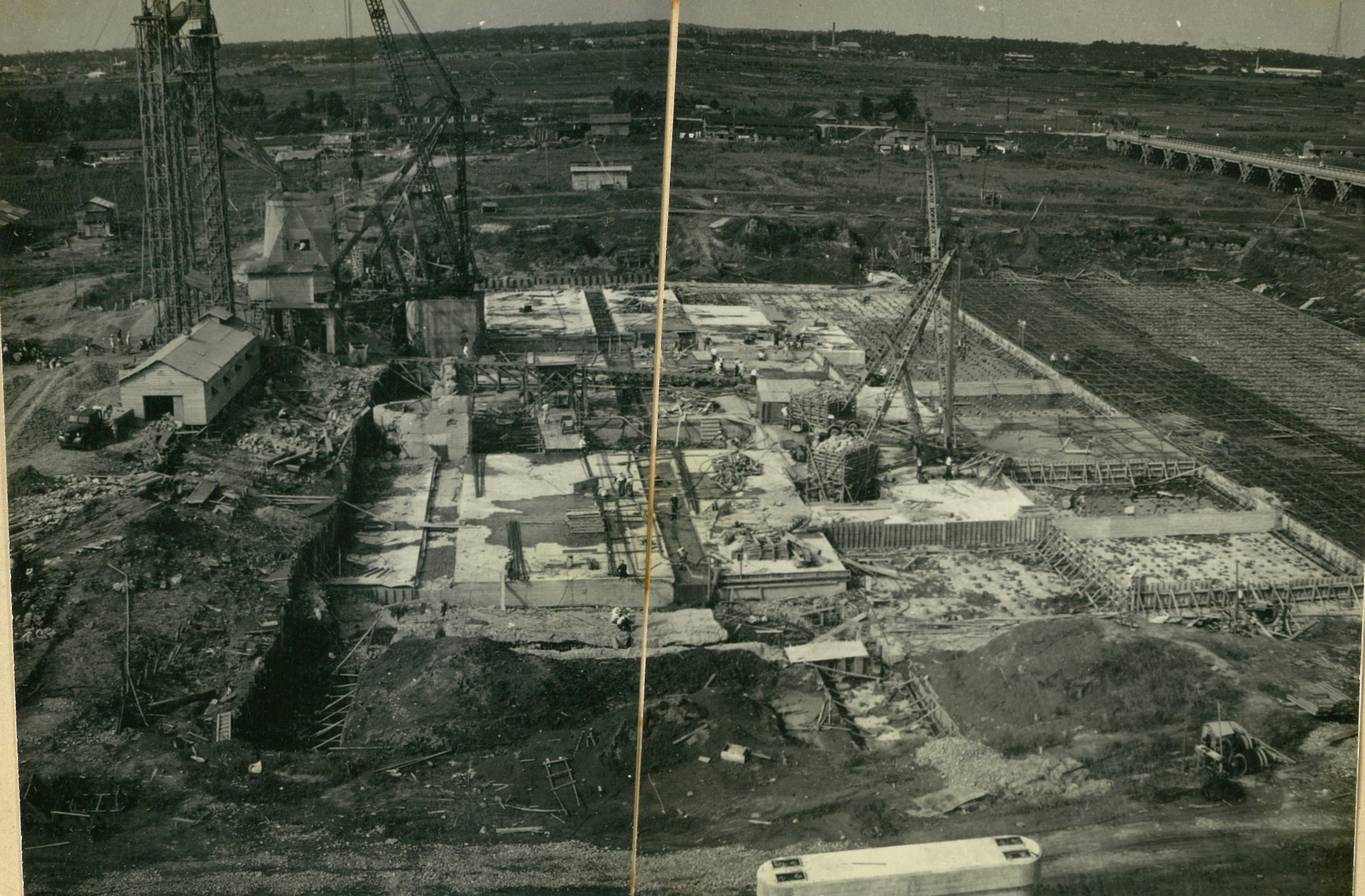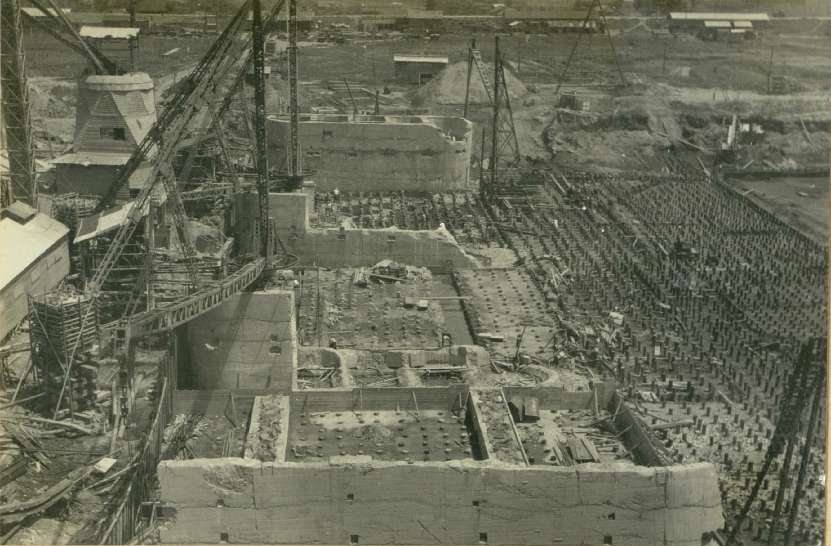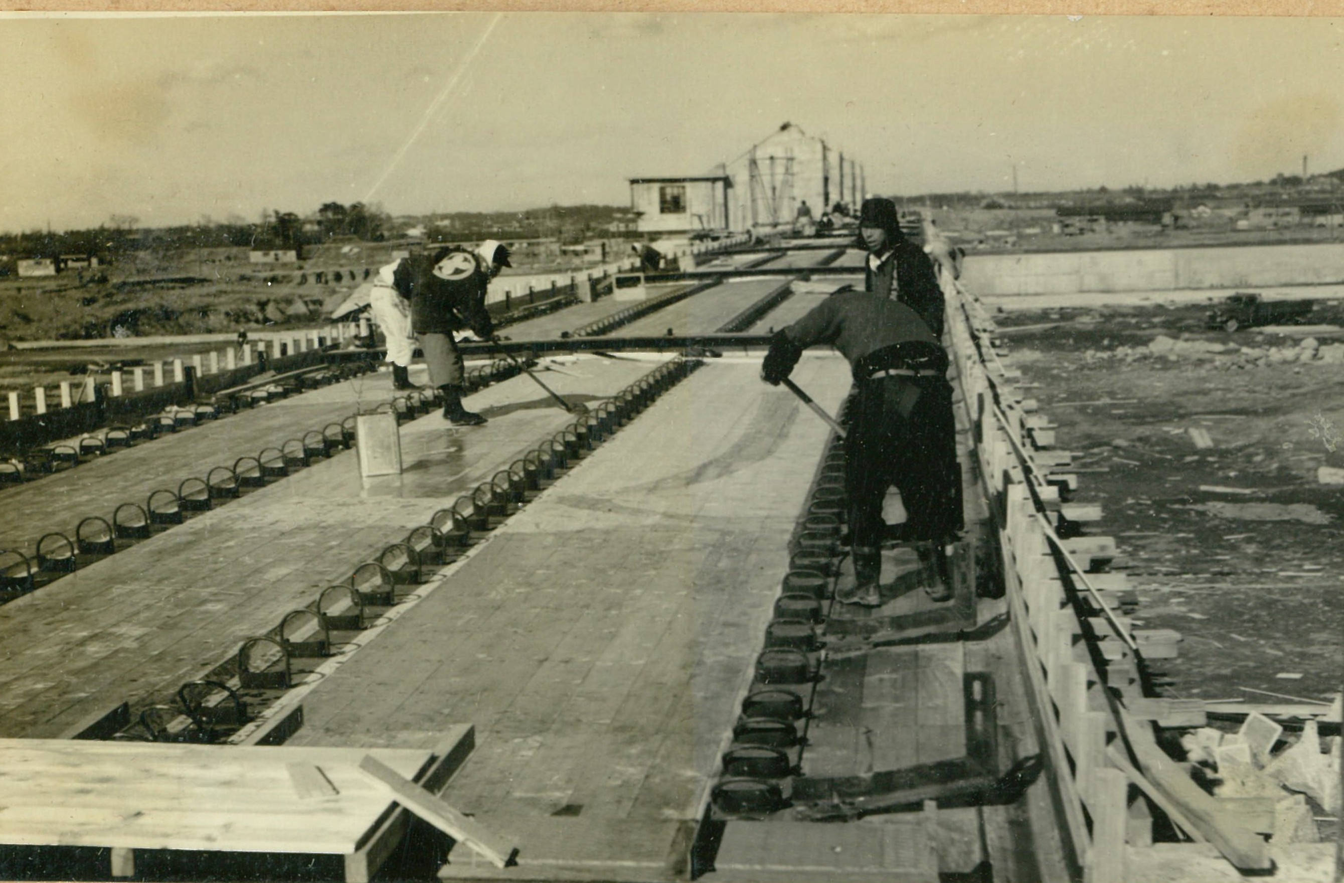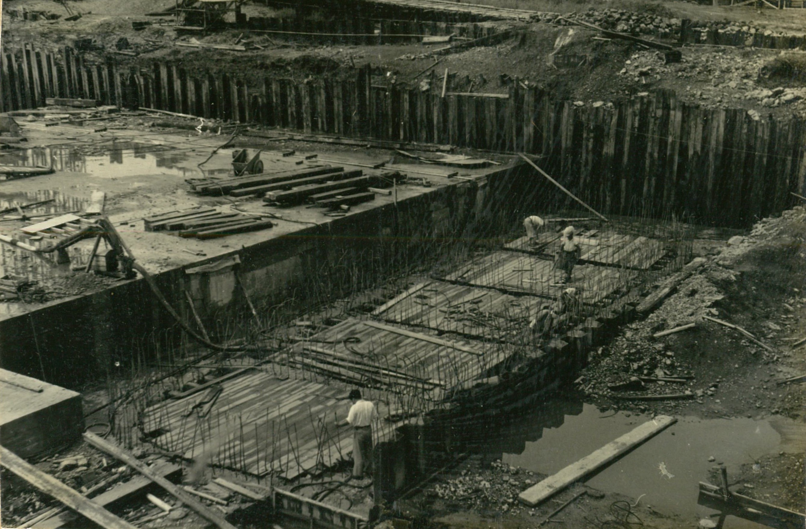 説明仮井筒徹却と併行し、コンクリートが着々と打設されて行く。