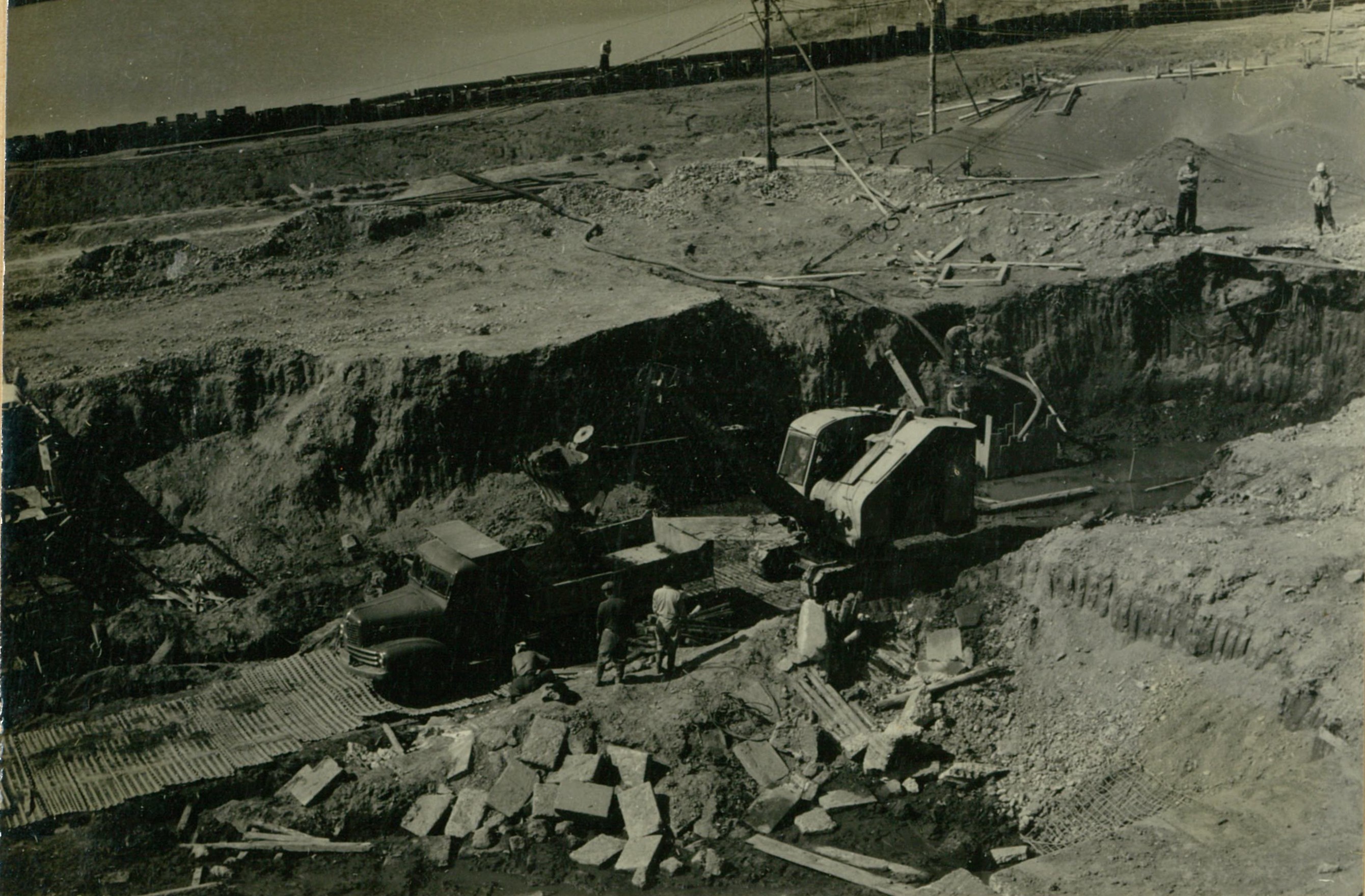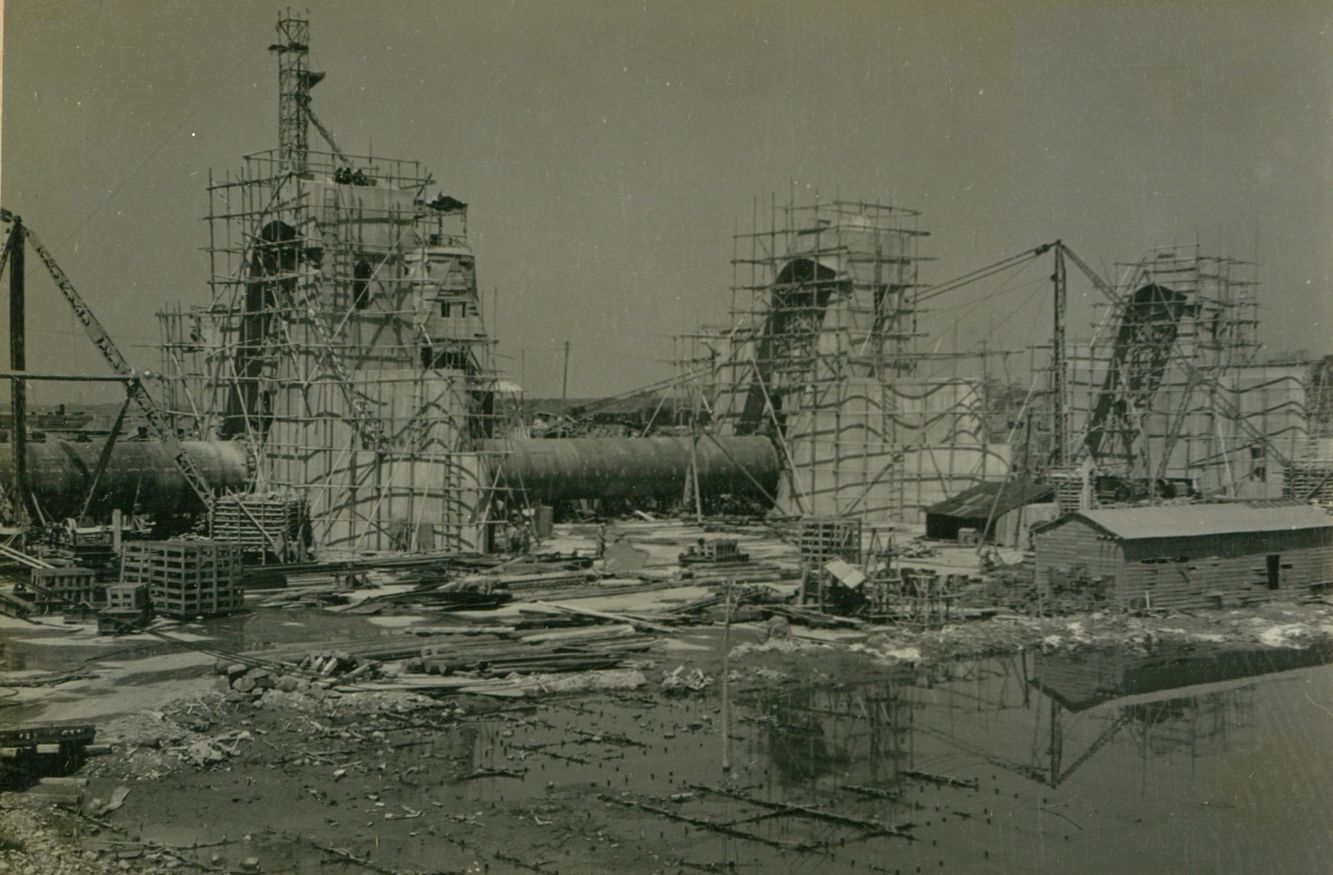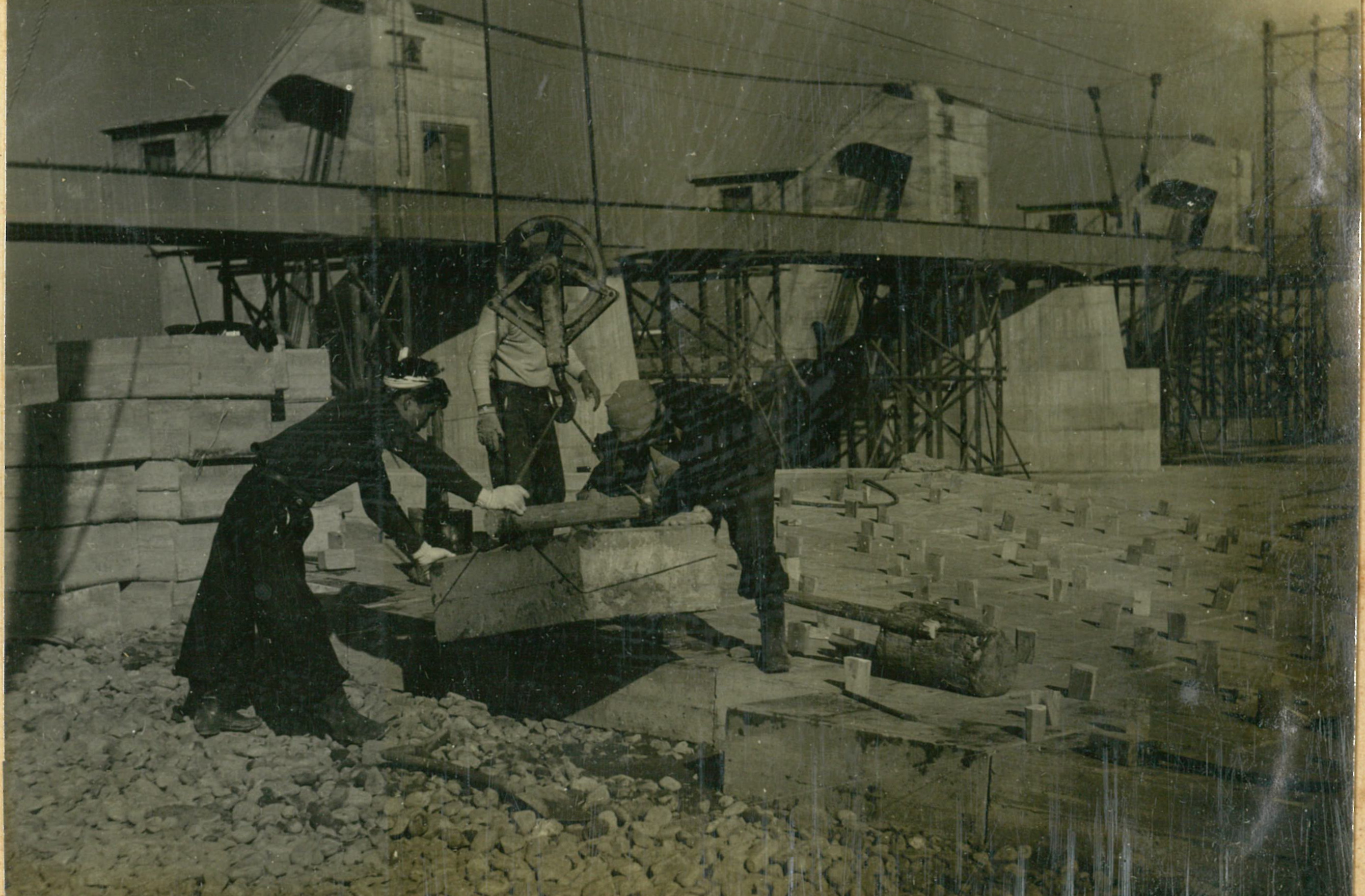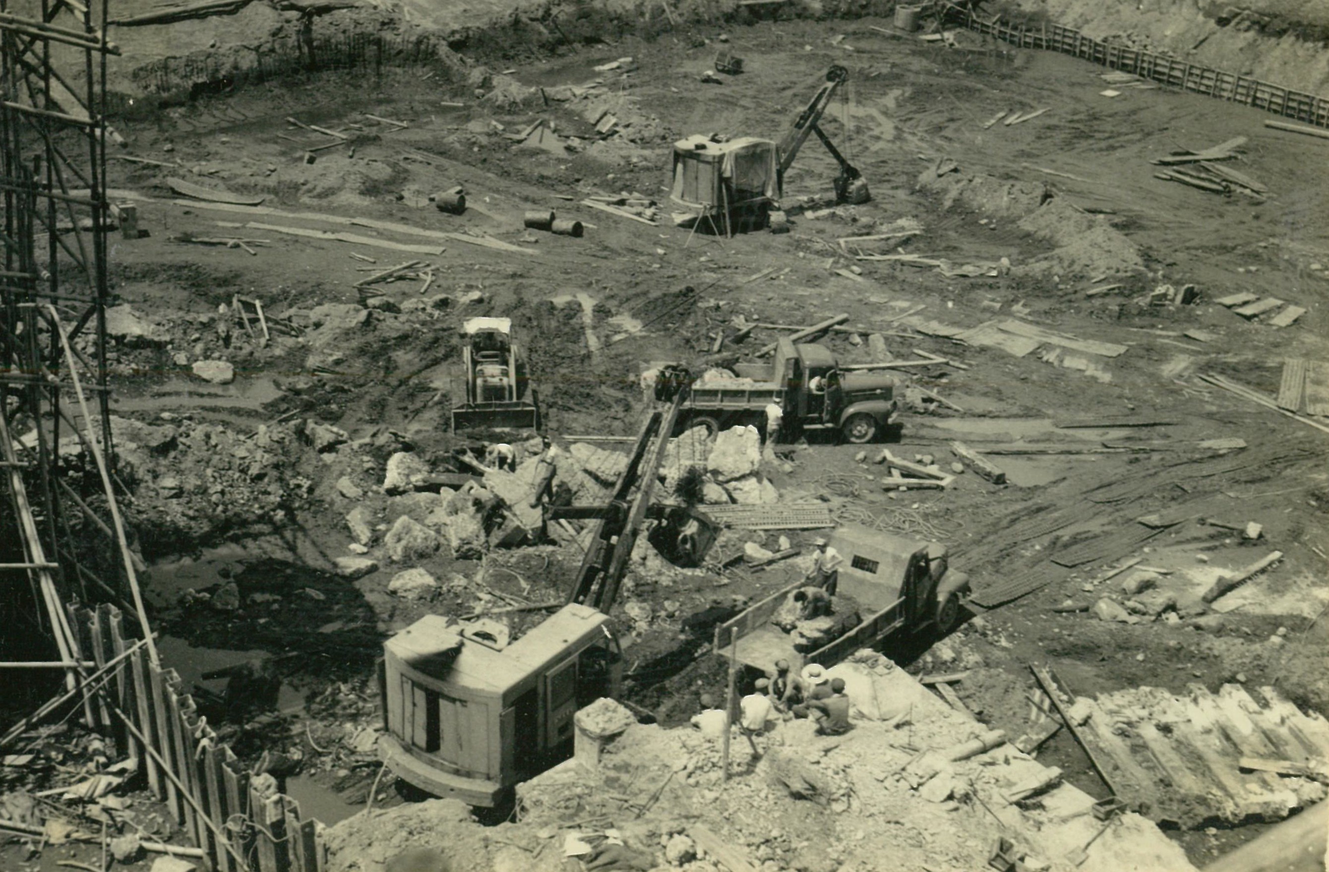 説明仮井筒徹却と併行し、コンクリートが着々と打設されて行く。