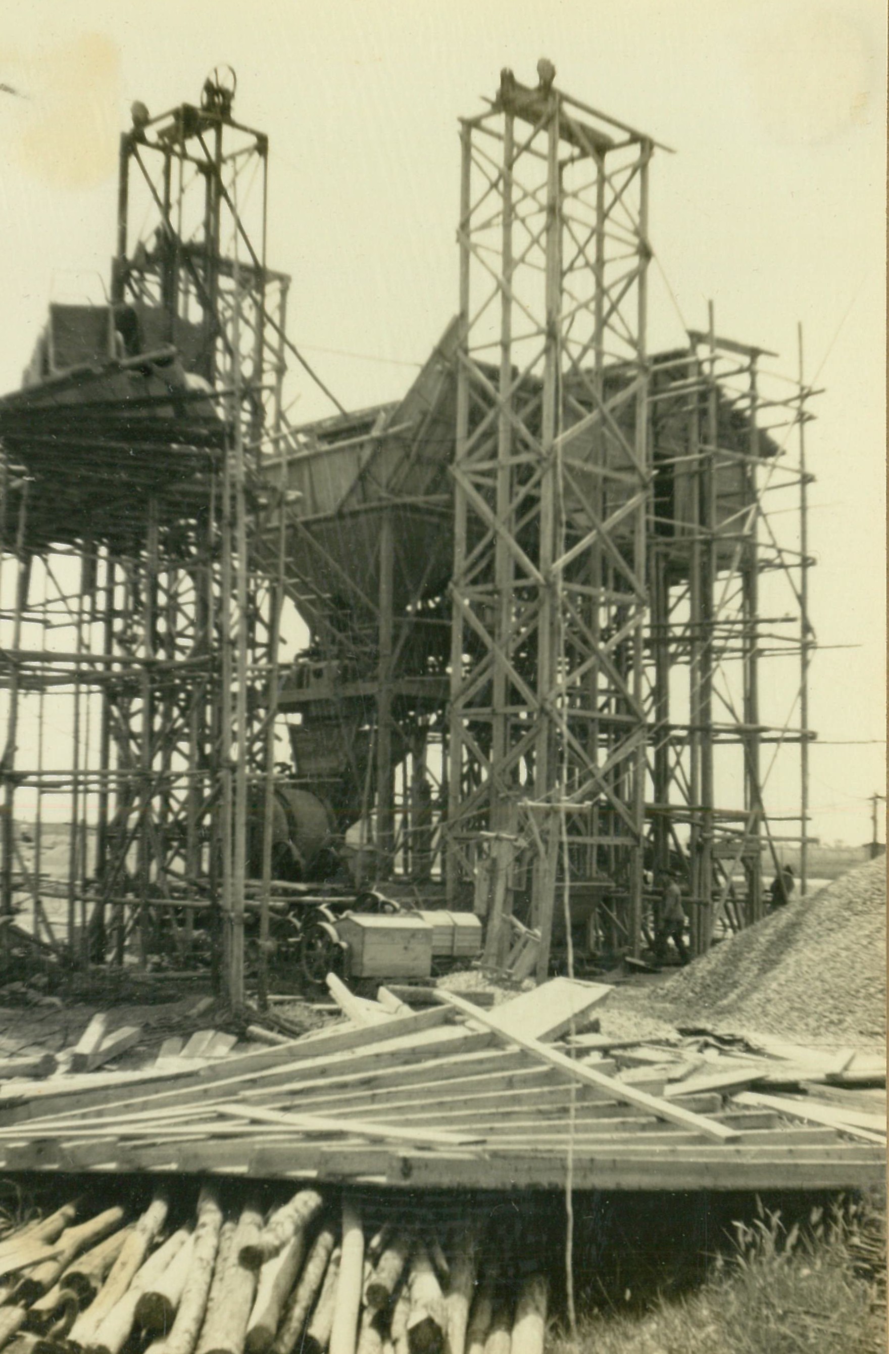 説明井筒用コンクリート・プラント、21切ウオーセクリーター。