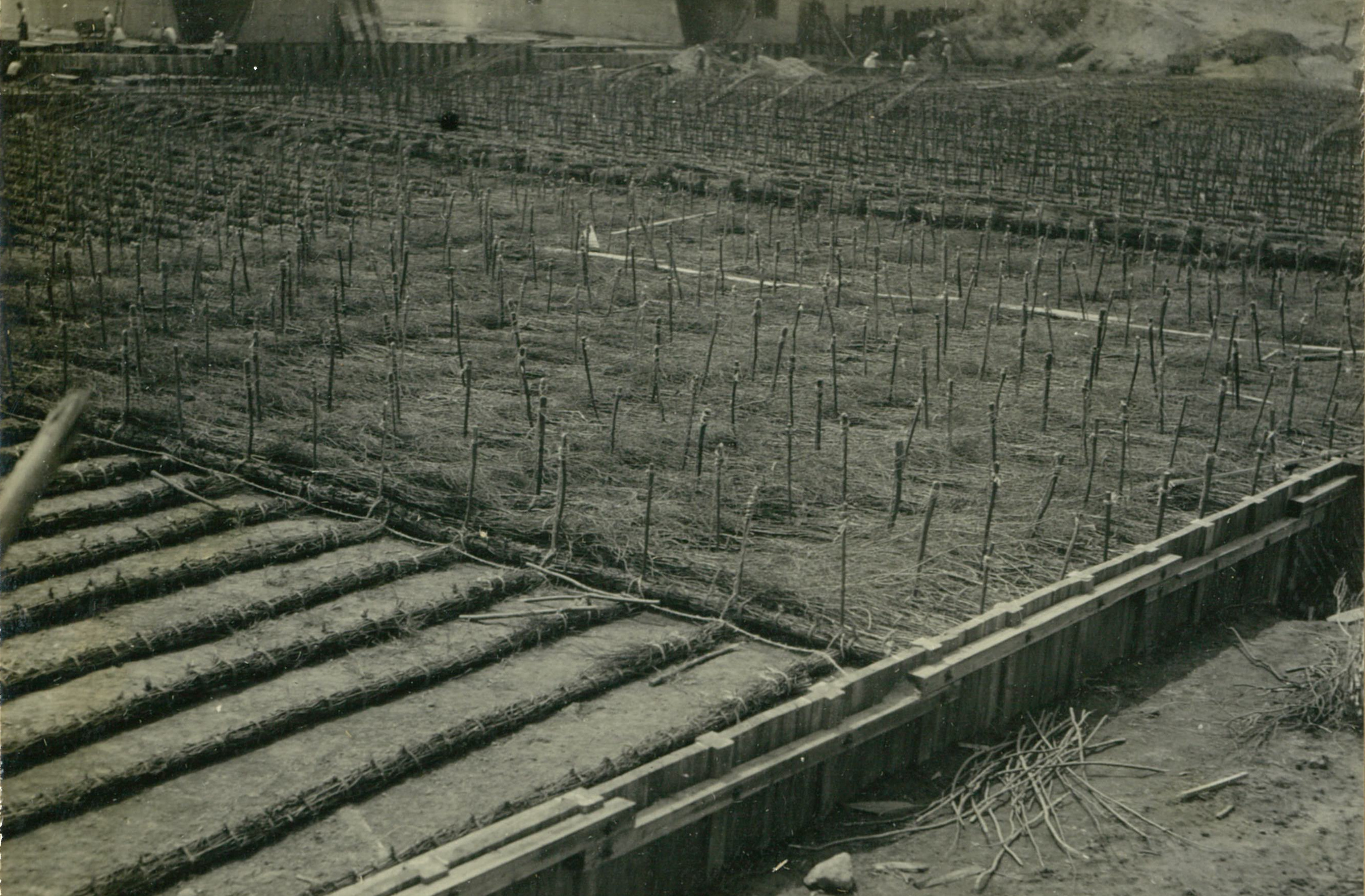 説明三層(厚90糎)の粗枝沈床4,000平方米、アルバイト学生がたくさん来たつけ。
