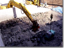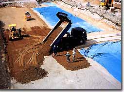 | We promote "Sabo CSG works", "rubble concrete works" and "permanent mold construction method" in which we can perform cost reduction by utilizing on site materials and decreasing the amount of concrete and excavated soil. Sabo CSG Works(Sabo Cemented Sand Gravel works) Utilizes on-site materials mixed with cement, and achieves construction cost reduction and shortening construction period. |
