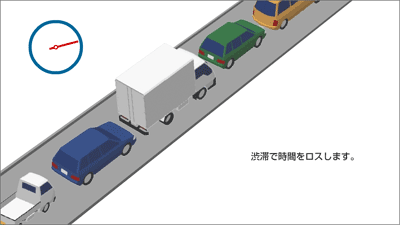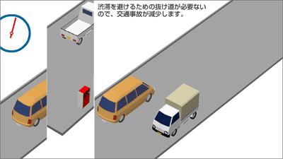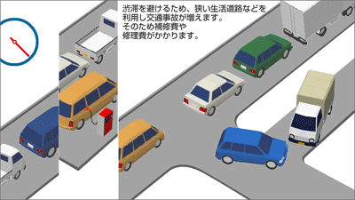 渋滞を避けるため、狭い生活道路を抜け道に利用するため、交通事故が増えます。その結果、補償費や修理費がかかります。