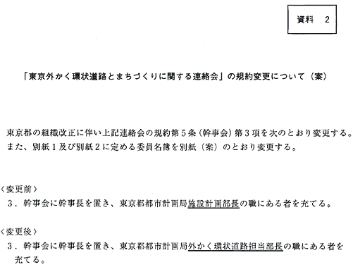 「東京外かく環状道路とまちづくりに関する連絡会」の規約変更について