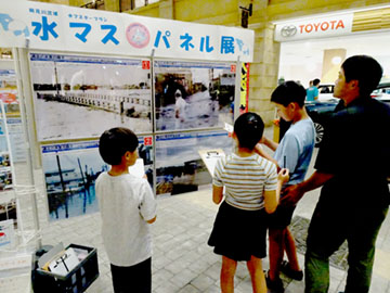 水マスの取り組みを紹介するパネル展示、流域各地の水マス関連施設や取り組みを紹介する流域体験ツアーなどの広報活動のご紹介です。