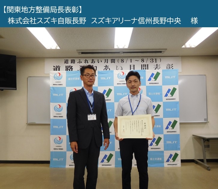 ・関東地方整備局長表彰 株式会社スズキ自販長野 スズキアリーナ信州長野中央 様