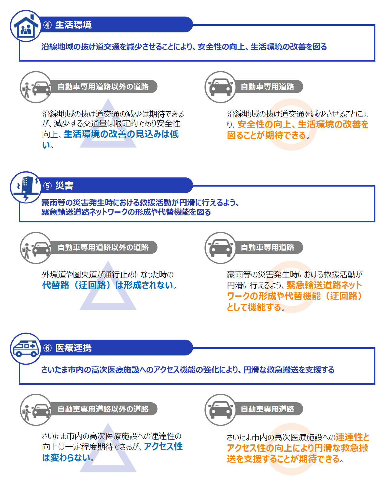 ・核都市広域幹線道路に求められるサービスレベルは、埼玉県東西軸道路検討会(令和3年12月10日)のとおり、「自動車専用道路」として検討を進めます。