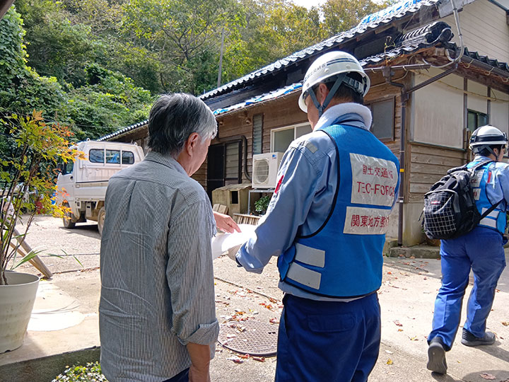 TEC-FORCEは、大規模な自然災害等に際して、被災自治体が行う被災状況の迅速な把握、被害の拡大や二次災害の防止、被災地の早期復旧等に対する技術的な支援を円滑かつ迅速に実施します。