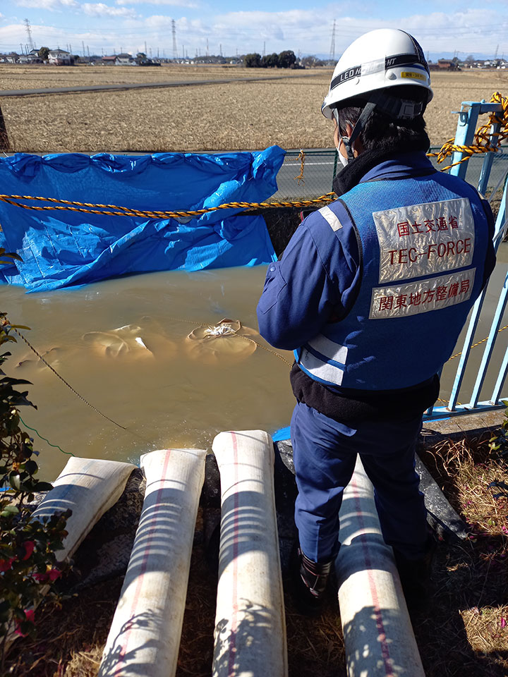 TEC-FORCEは大規模自然災害が発生した際に、被災地に迅速に駆けつけ支援を行う国土交通省の部隊です。 被災状況の迅速な把握、被害の拡大や二次災害の防止、被災地の早期復旧等に対する技術的な支援を行います。 全国の17,887名(R7.4月時点)の地方整備局等の職員で構成され、関東地方整備局では、2,035名の隊員(R7.4月時点)がいます。