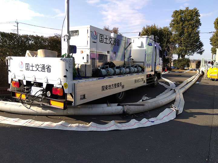 排水ポンプ車による排水支援①(埼玉県春日部市)
