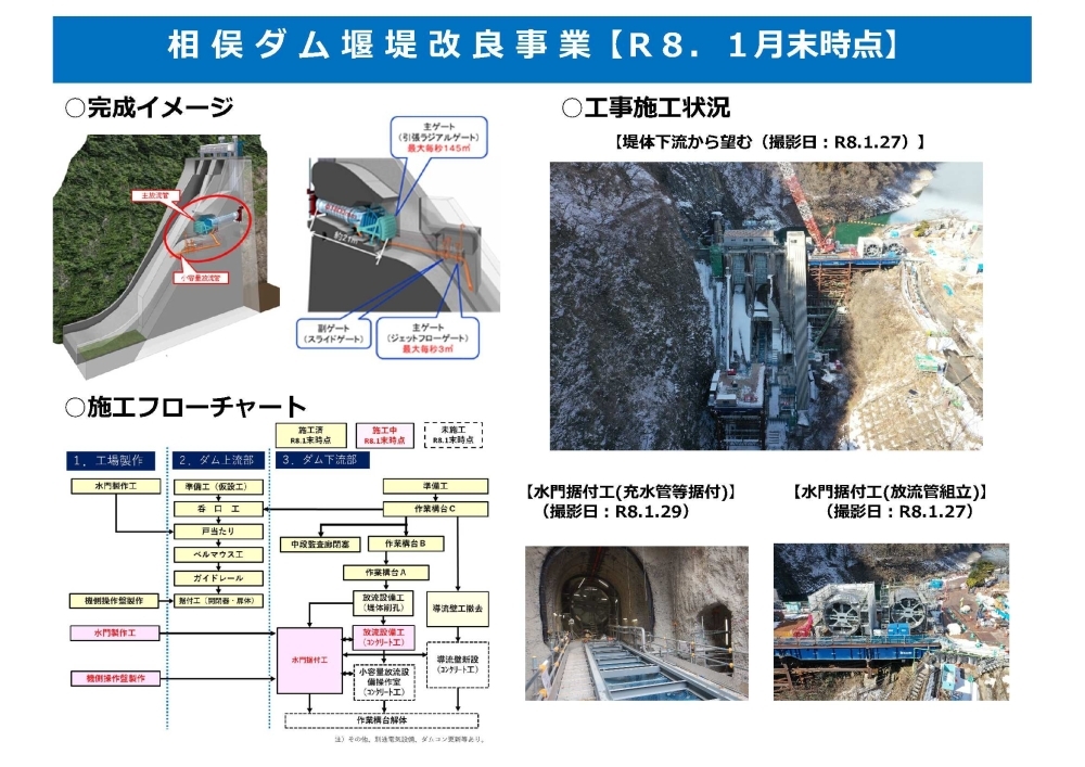 相俣ダム堰堤改良事業の進捗状況【令和8年1月末時点】を掲載しました