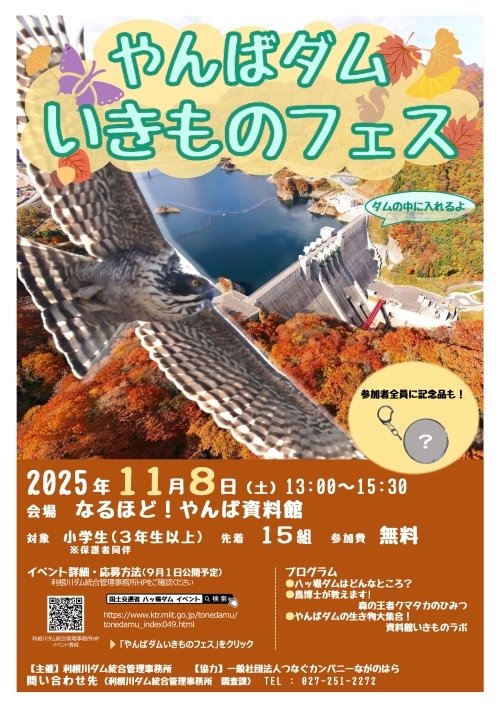 ・ダム内部には急な階段があるため、同行者含めて階段の昇降に支障のない方がご参加されるようお願いいたします。