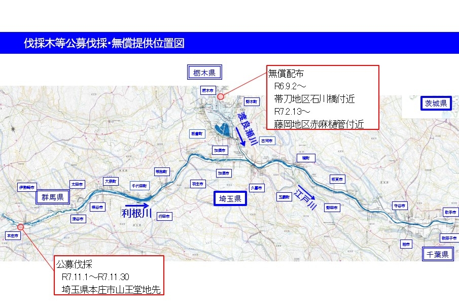 https://www.ktr.mlit.go.jp/tonejo/tonejo01192.htm伐採木・刈草無償提供情報