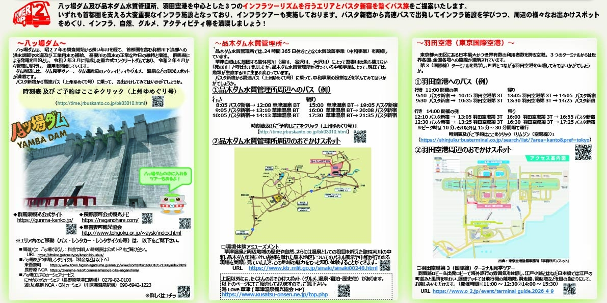 この度、八ッ場ダム及び品木ダム水質管理所、羽田空港を中心とした3つのインフラツーリズムを行うエリアとバスタ新宿を繋ぐバス旅をご提案いたします。
